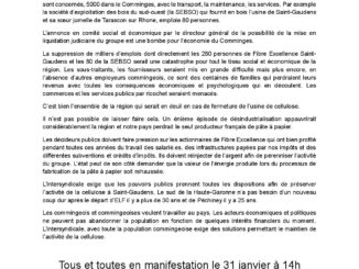 Samedi 31 janvier à 14 h à Saint-Gaudens / Manifestation pour le maintien des emplois et contre la fermeture de la Cellulose à Saint-Gaudens