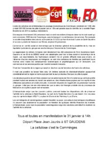 Pour le maintien des emplois et contre la fermeture de la Cellulose à Saint-Gaudens : mobilisons-nous massivement !